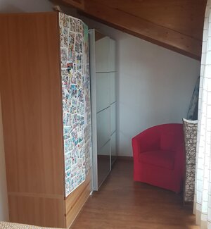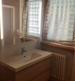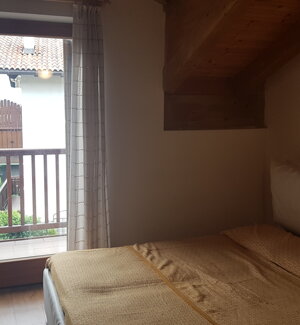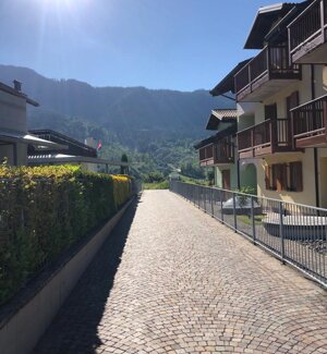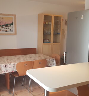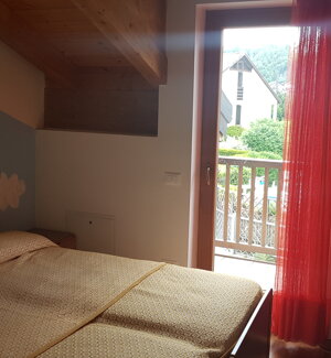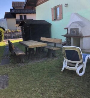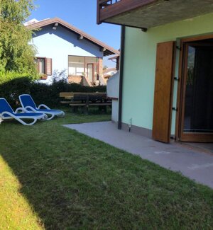 Spaziosa villetta con giardino, situata in zona tranquilla dietro l'hotel.Ampia casa di 120 mq divisa su 2 piani. Il piano terra, collegato direttamente con il giardino privato, dispone di cucina attrezzata con zona pranzo, ampio soggiorno con stufa legna, e bagno di servizio con lavatrice.